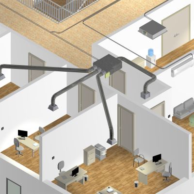 System Niezależnej Dystrybucji powietrza zasilany jednym urządzeniem kanałowym jest idealnym rozwiązaniem w budynkach typu biurowiec, apartamentowiec, pensjonat, gdzie pozwala na efektywne klimatyzowanie stref od 2 do 8 pomieszczeń, z niezależnym ustawieniem temperatury w tych pomieszczeniach.
